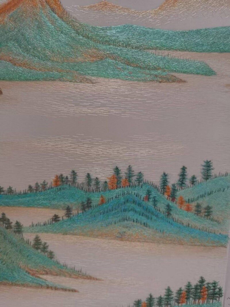 - 绣布:真丝与澳洲羊毛混纺/仿真丝面料(无弹性,适合表现该作品)