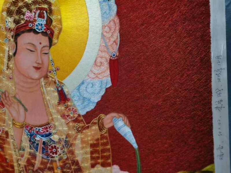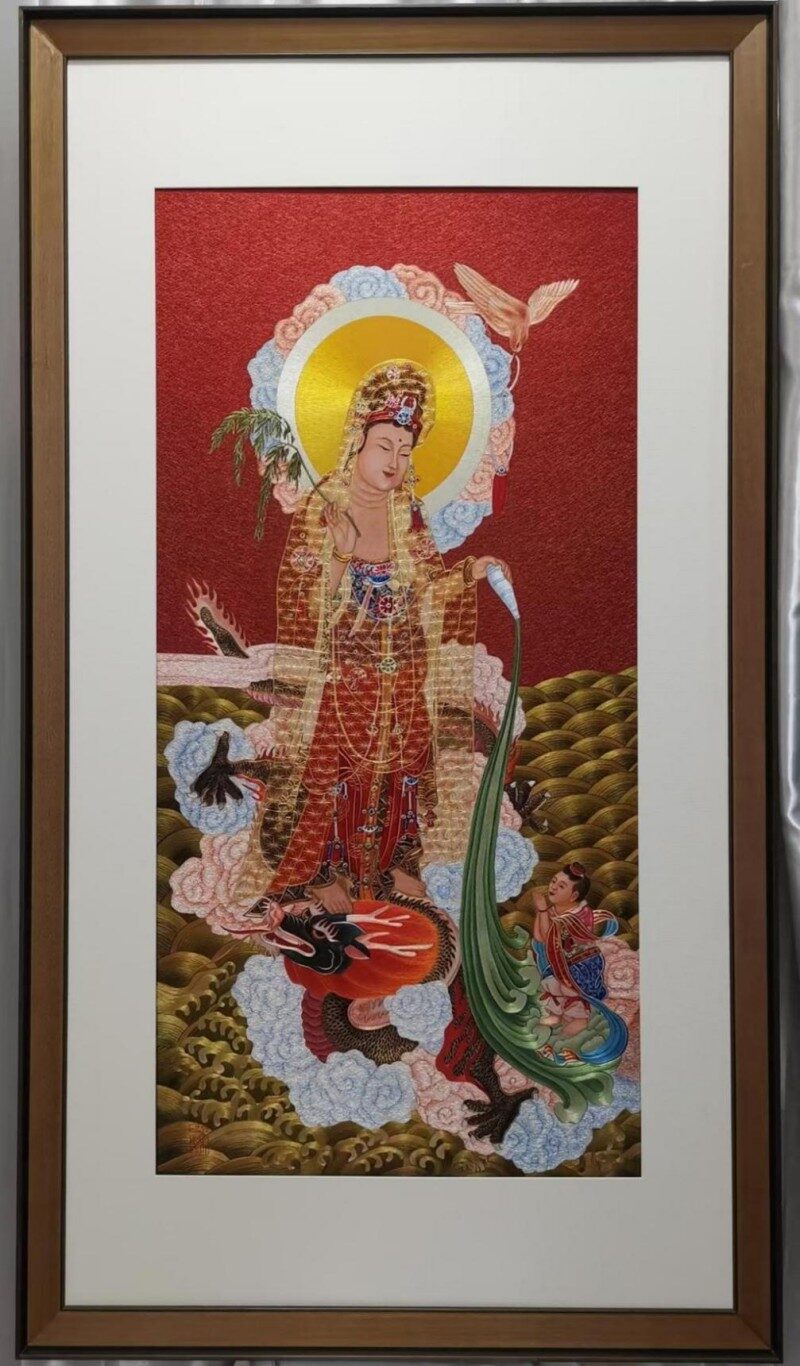 内藏朱军成大师亲笔签名(横看): “观音 50×100 朱军成 2025年12月”