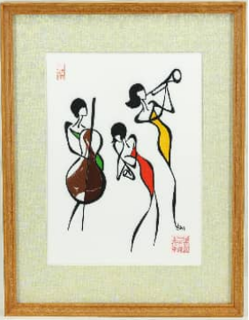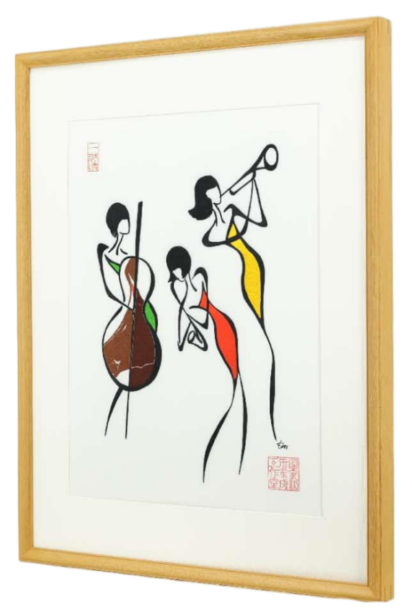 女子乐队》局部 国家级朱军成绣印 塔季杨娜签名绣印