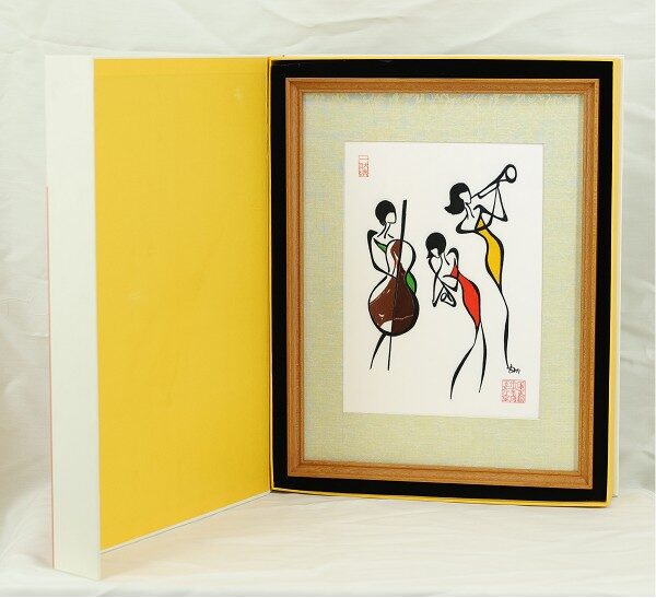 画芯40x55cm,纸盒外延尺寸:58×76.5×5.2cm;插入式,封面覆铜板纸印刷,内衬珍珠棉覆黑绒。