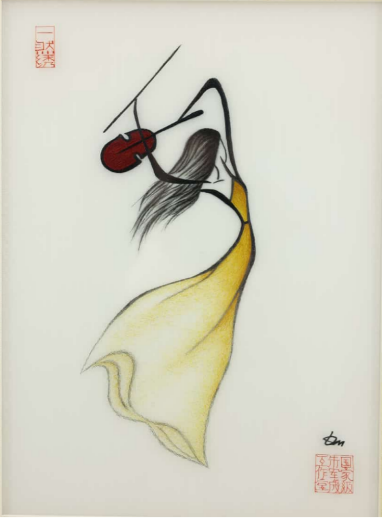 《小提琴之舞》局部 一然绣印 |