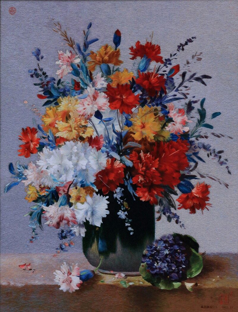 《康乃馨》:一然绣出的母爱温情与精湛工艺