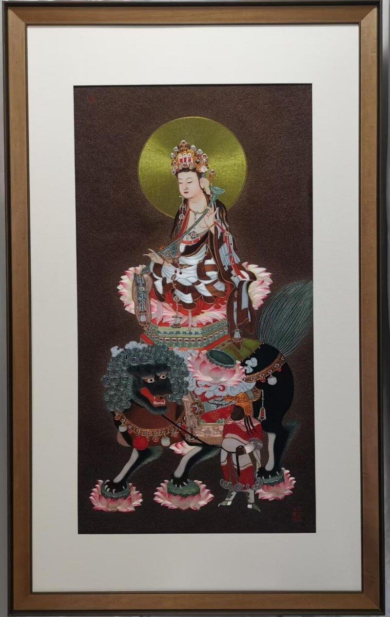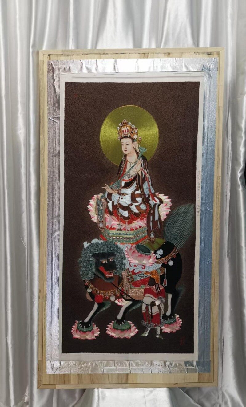 内藏朱军成大师亲笔签名(横看): “文殊菩萨 50×100 朱军成 2025年2月”
