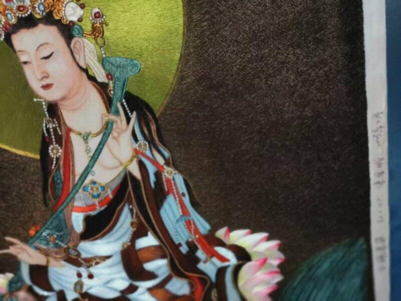 - 绣布:真丝与澳洲羊毛混纺/仿真丝面料(无弹性,适合表现该作品)