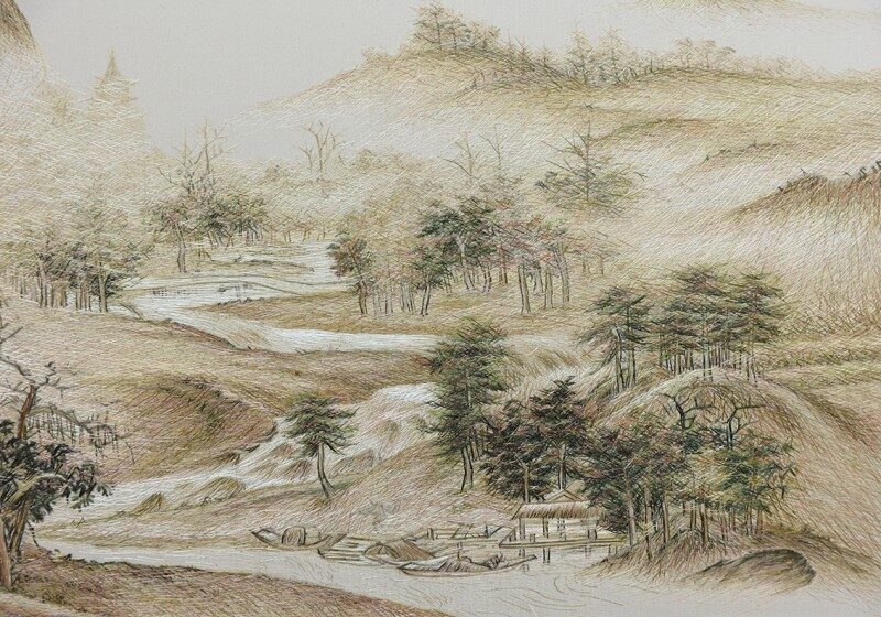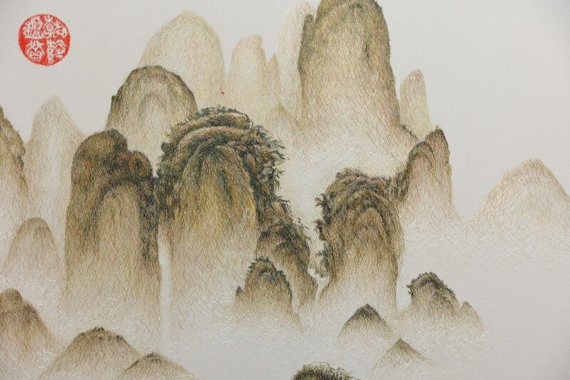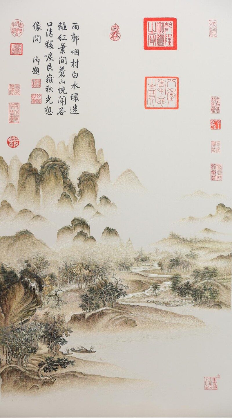 青绿山水刺绣:精湛工艺的视觉盛宴