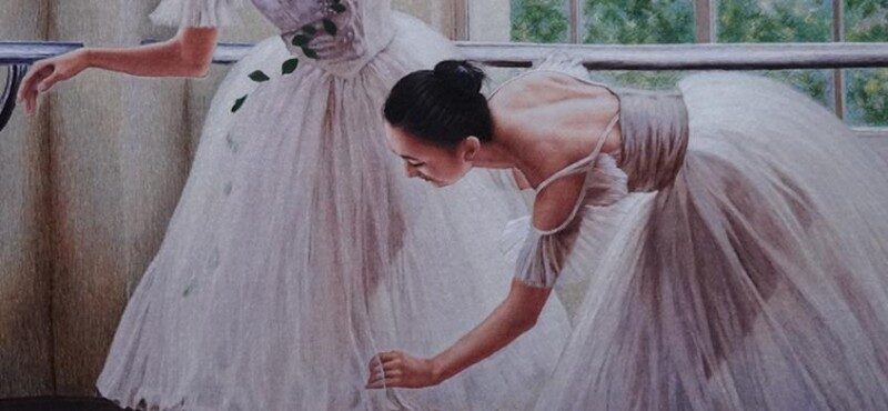朱军成在刺绣领域深耕多年,对一然绣有着深厚的造诣与独特的见解。为了创作《舞伴》这幅作品,他以著名画家关则驹的油画作品为蓝本,深入研究油画中的色彩运用、构图布局以及情感表达。在绣线的挑选上,朱军成犹如一位严苛的艺术家,从数千种绣线中精心筛选出最适合表现画面中每一个细节的颜色与质地。针对舞女的肌肤,他选用了细腻柔软、色泽温润的绣线,通过细腻的针法,将肌肤的光滑质感与弹性完美呈现;对于透明白色纱裙,他巧妙地运用了不同光泽度的绣线,长短针交替使用,营造出纱裙的透明感与层次感;在描绘窗外春色时,他则根据不同植物的特点,选用了丰富多样的绿色绣线以及鲜艳的彩色绣线,通过巧妙的搭配与针法变化,展现出春色的生机与活力。