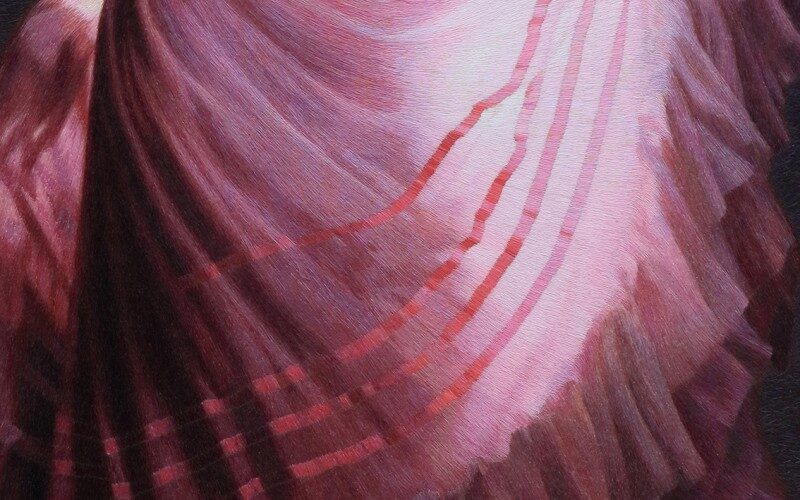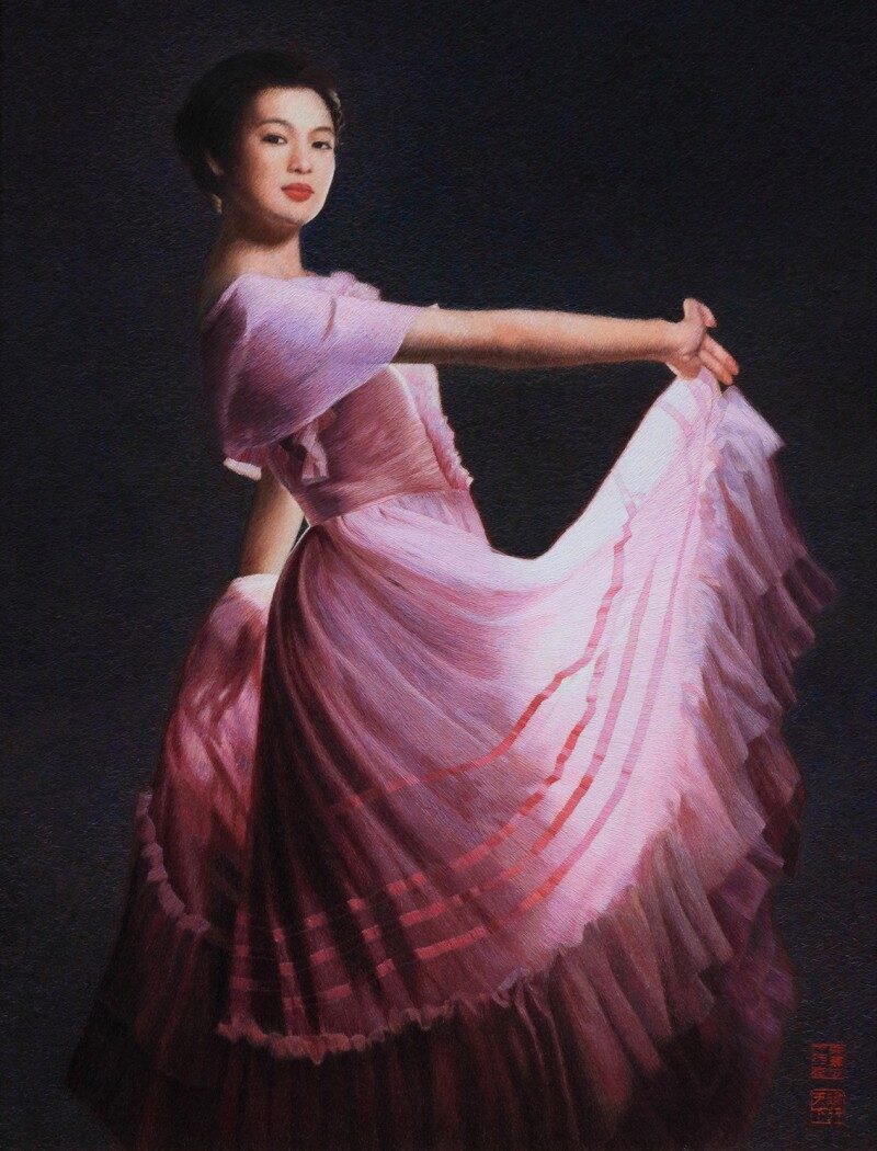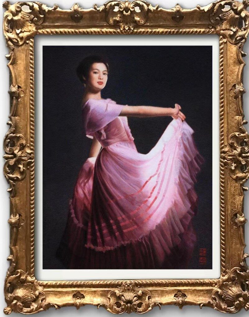 从工艺精湛的角度来看,《蝶舞》无疑是一然绣艺术的璀璨明珠。作品中,绣娘们用丝线巧妙地勾勒出舞者灵动的身姿。那飘逸的裙摆如同真实的绸缎在风中舞动,每一处褶皱都饱含着绣工们的心血。粉色的裙摆色彩层次丰富,从浅至深的过渡自然流畅,仿佛光线在其上跳跃,这得益于乱针绣针法的灵活运用,丝线长短交错,疏密有致。