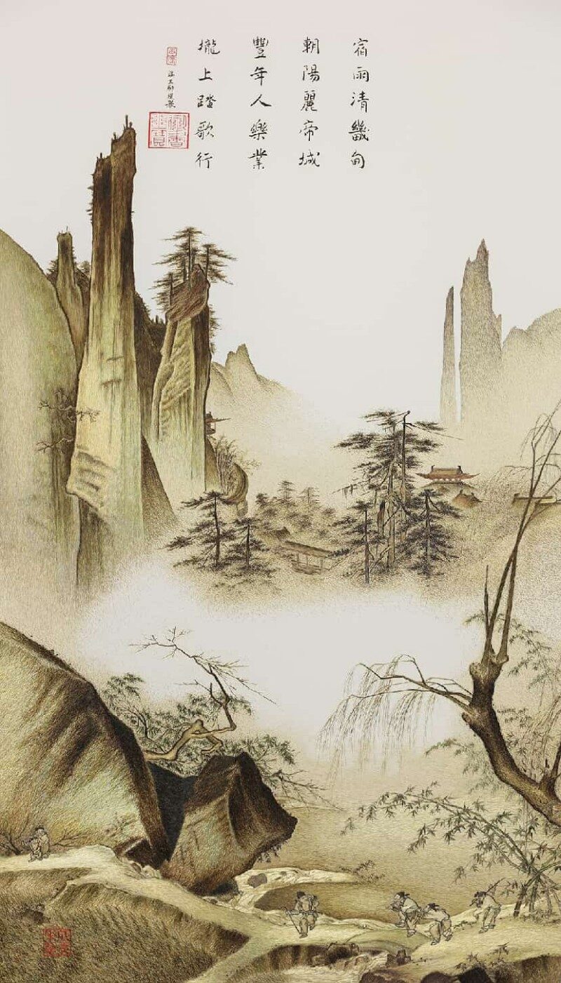 《踏歌行图》 宋 马远原作 一然绣法绣制
