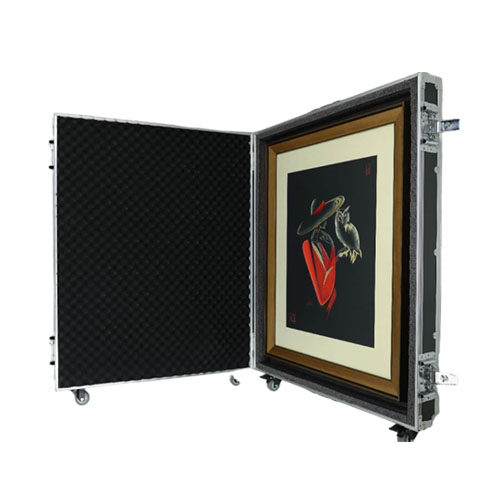画芯40x55cm,外延尺寸:72.4×90.5×17.5cm。翻盖式样,内衬黑色珍珠面。